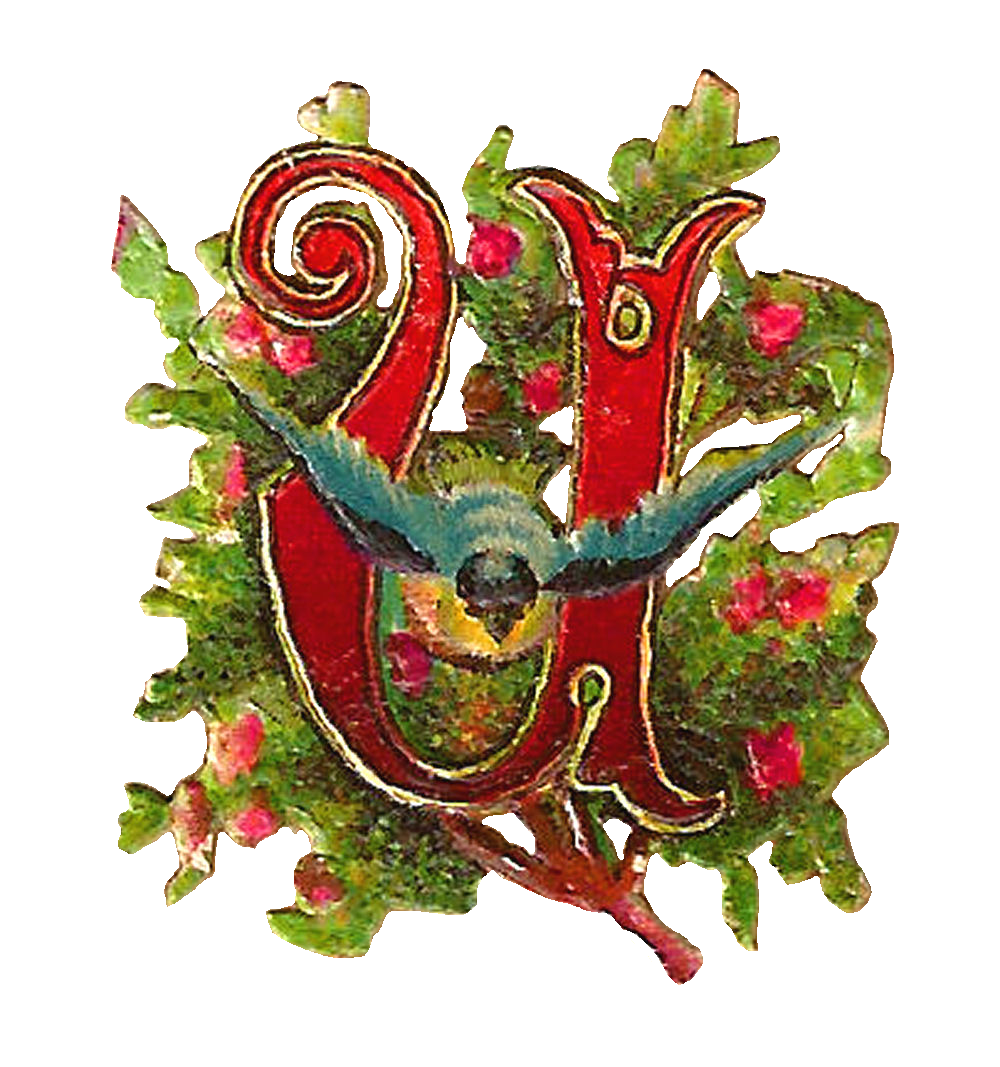 This is a pretty digital drop cap download of the letter 'u'. I love the distressed, vintage look of this drop cap graphic. And, the little blue bird with spread wings makes it even more charming an image. This digital scrap of a drop cap is perfect for a personalized project or just as a beautiful drop cap letter, decorating a lovely phrase. I hope you enjoy this drop cap download in your projects!
