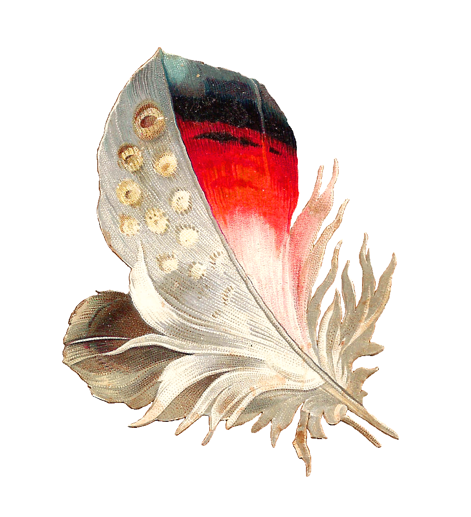 Feather Clip Art: Antique Victorian Scrap of Bird Feather Black, White, and Red