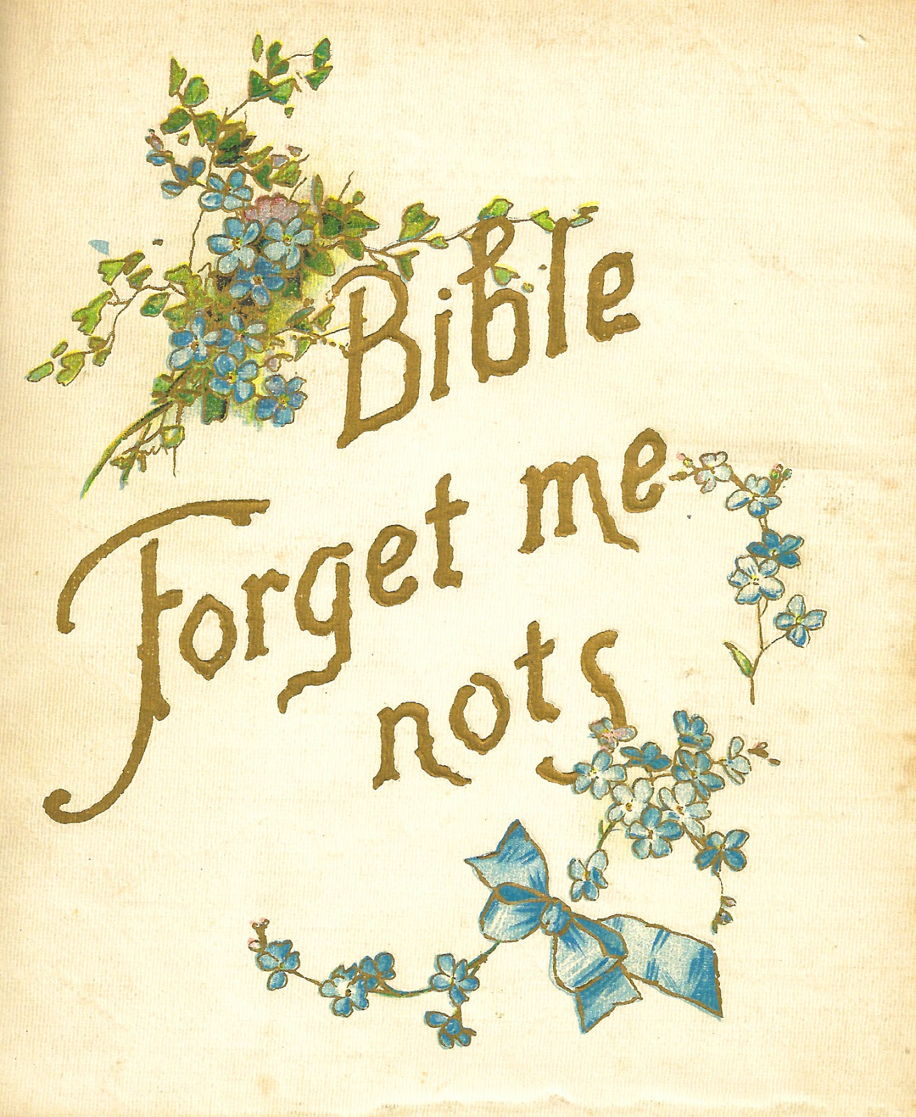Free Flower Graphic: Vintage Book Cover with Forget-Me-Not Flower Illustration