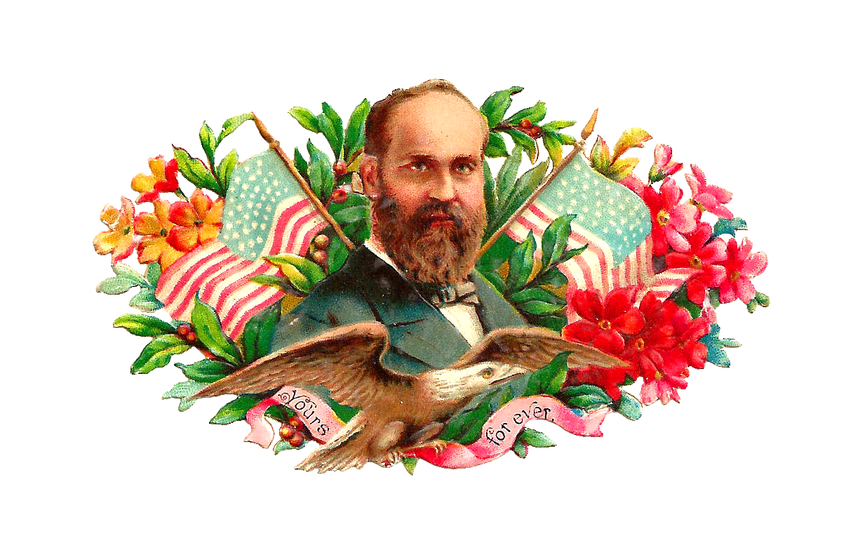 Free President Graphic: Antique President Garfield Clip Art on Victorian Scrap Die Cut with American Flag and Eagle