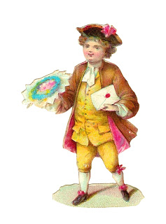 Isn't he just too cute?! This little Victorian scrap is just so lovely and adorable. I think this little Colonial boy would be perfect on a handmade Valentine's Day greeting card with his sweet love note and wreath of flowers. I've given you both the .jpg and .png files of this antique image. I hope you enjoy!