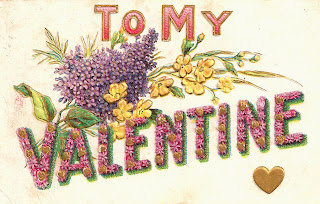 With Valentines's Day quickly approaching, I thought I'd post some pretty and fun Valentine clip art for your projects. First up is this wonderful vintage Valentine's Day greeting postcard. I just love these vintage postcards with the greeting written in flowers! They're spectacular! And, of course, the mix of purple and yellow together is one of my favorites. I hope you enjoy!
